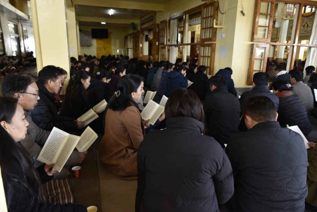 藏人行政中央公務員和藏人民眾在祈願法會上誦經祈禱 2024 年 3 月 8 日 攝影/ Tenzin Jigme Taydeh / 西藏之頁