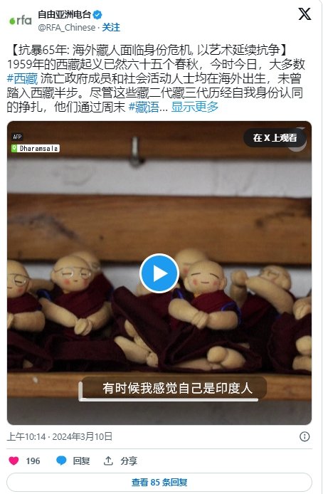 2024年3月10日是西藏自由抗暴65周年紀念日。在此之際,據西藏之聲報導,居住在美國與歐洲、加拿大、澳洲、日本、臺灣等地的流亡藏人及援藏人士舉行了各種活動來紀念這一天。